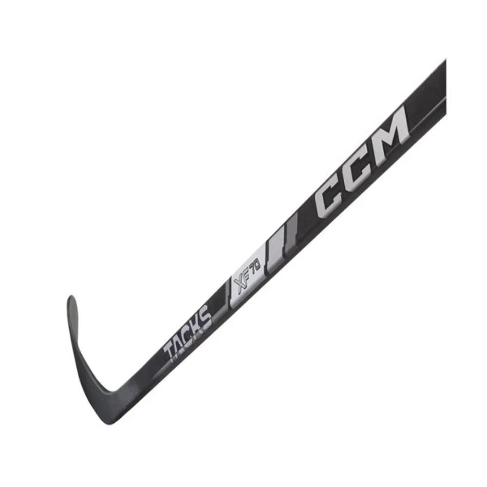 Level up your game with the CCM Tacks XF70 Ice hockey stick. Its mid kickpoint and soft mid-section allow for longer loading, maximizing shot power on the ice. The square "T" shaft geometry ensures excellent grip and control, while the UAF blade with grit finish delivers lightweight precision for accurate shooting and passing.