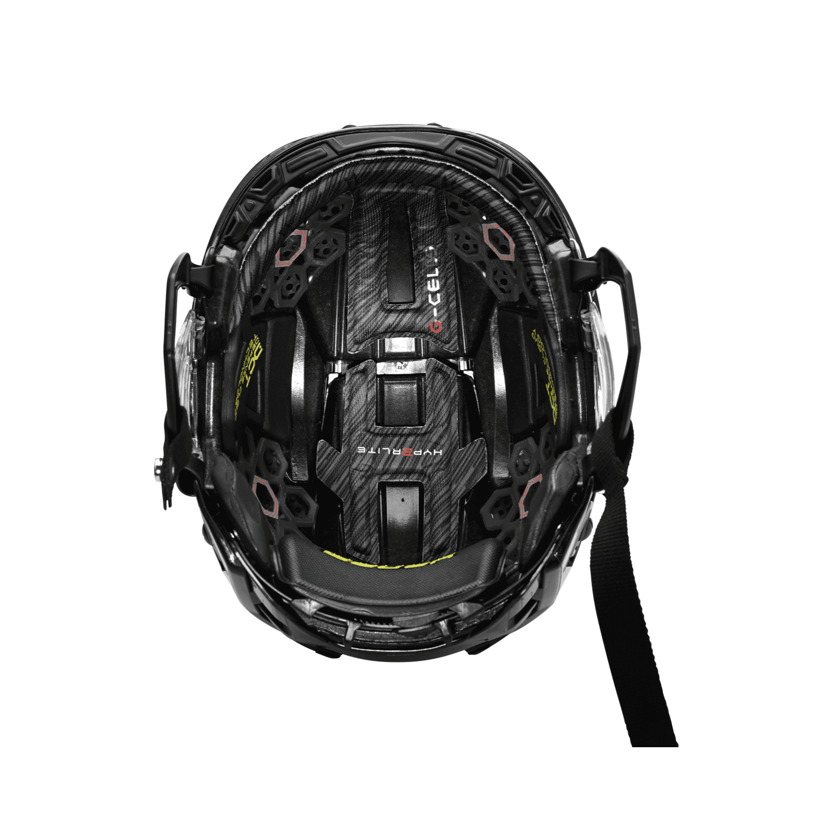 The Bauer Hyperlite2 Hockey Helmet has three main features to bring you one of the best elite level helmets on the market. The GX-Cells have premium comfort and ventilation plus mitigates low, mid and high energy forces utilising a revolutionary 3D printing structure. The occipital lock and FreeForm adjustment system allows independent  length and width adjustment while keeping the head locked In for an elite level fit. Vents are strategically placed on the outside of the shell match up with GX-Cell intergration to allow air to flow freely and decrease recovery time.