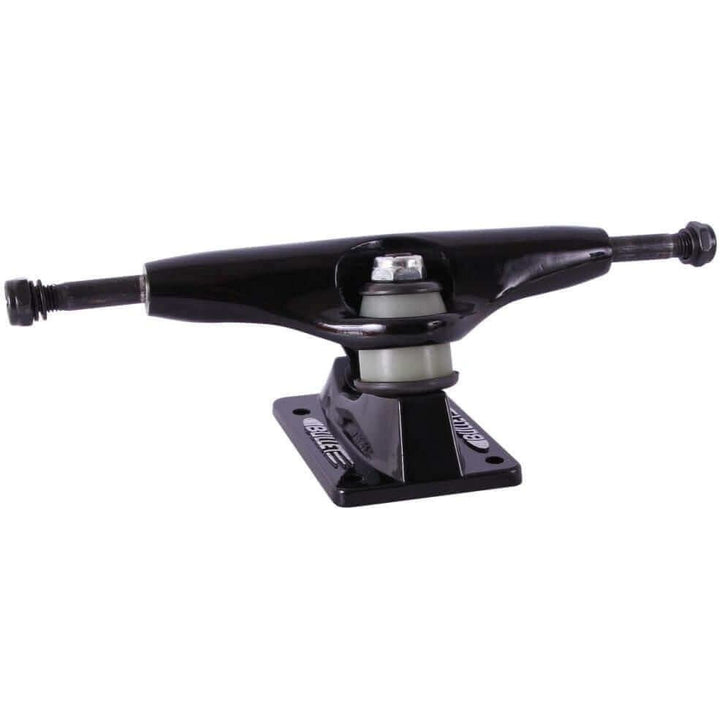 The Bullet 130mm black trucks have a classic geometry for all terrain shredding. The trucks come with premium high rebound 88a cushions. Integrated bottom cushion cup. Super strong hanger design. Grade 8 kingpin