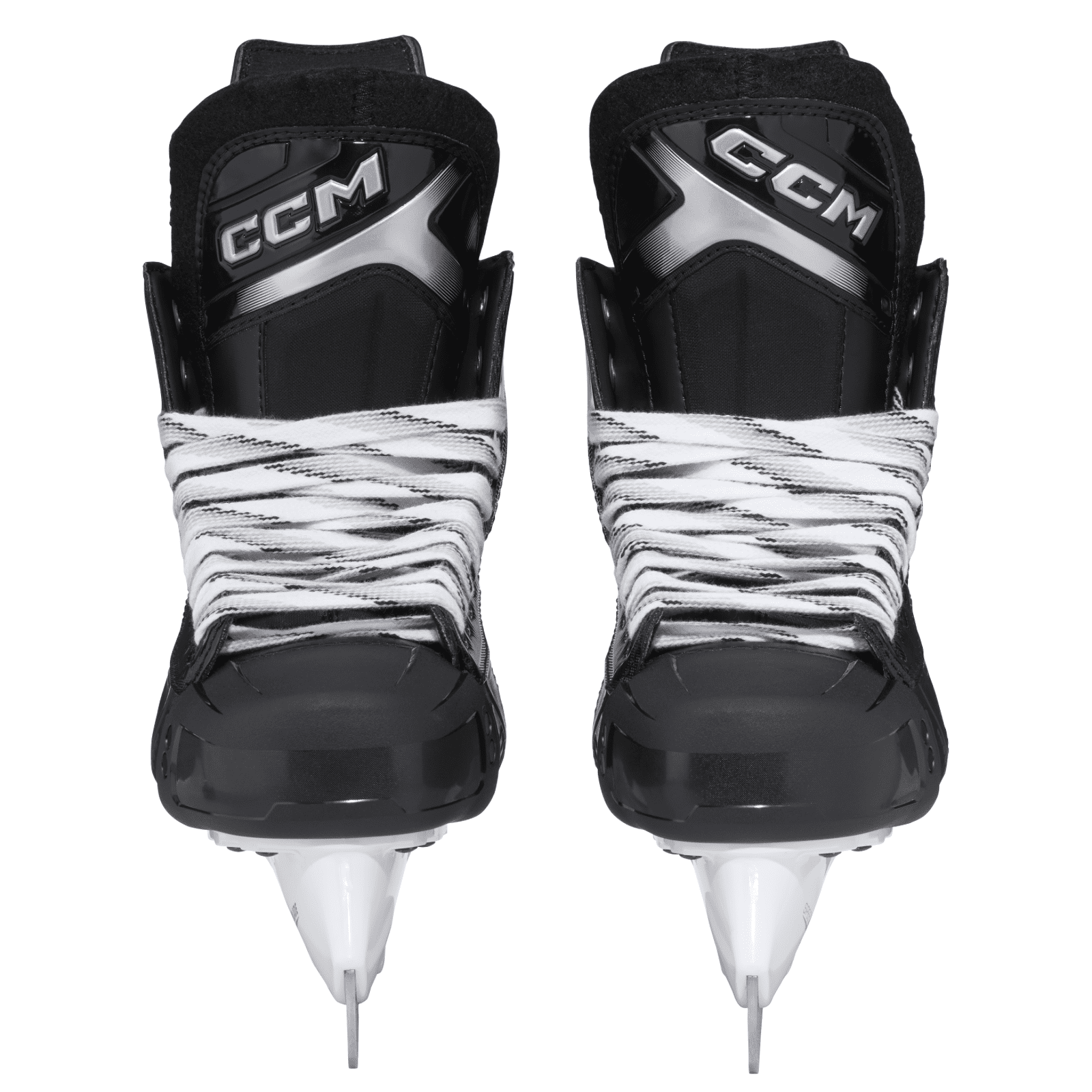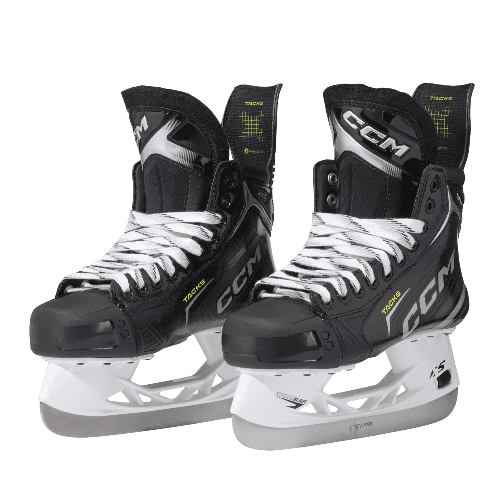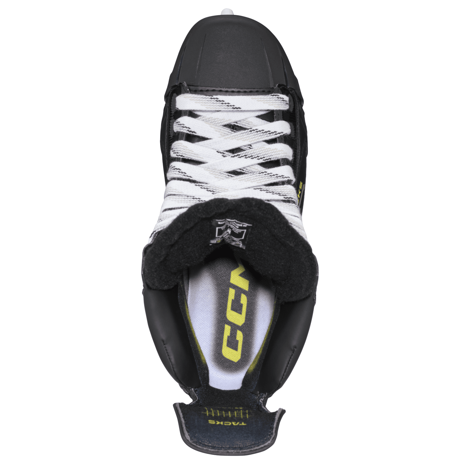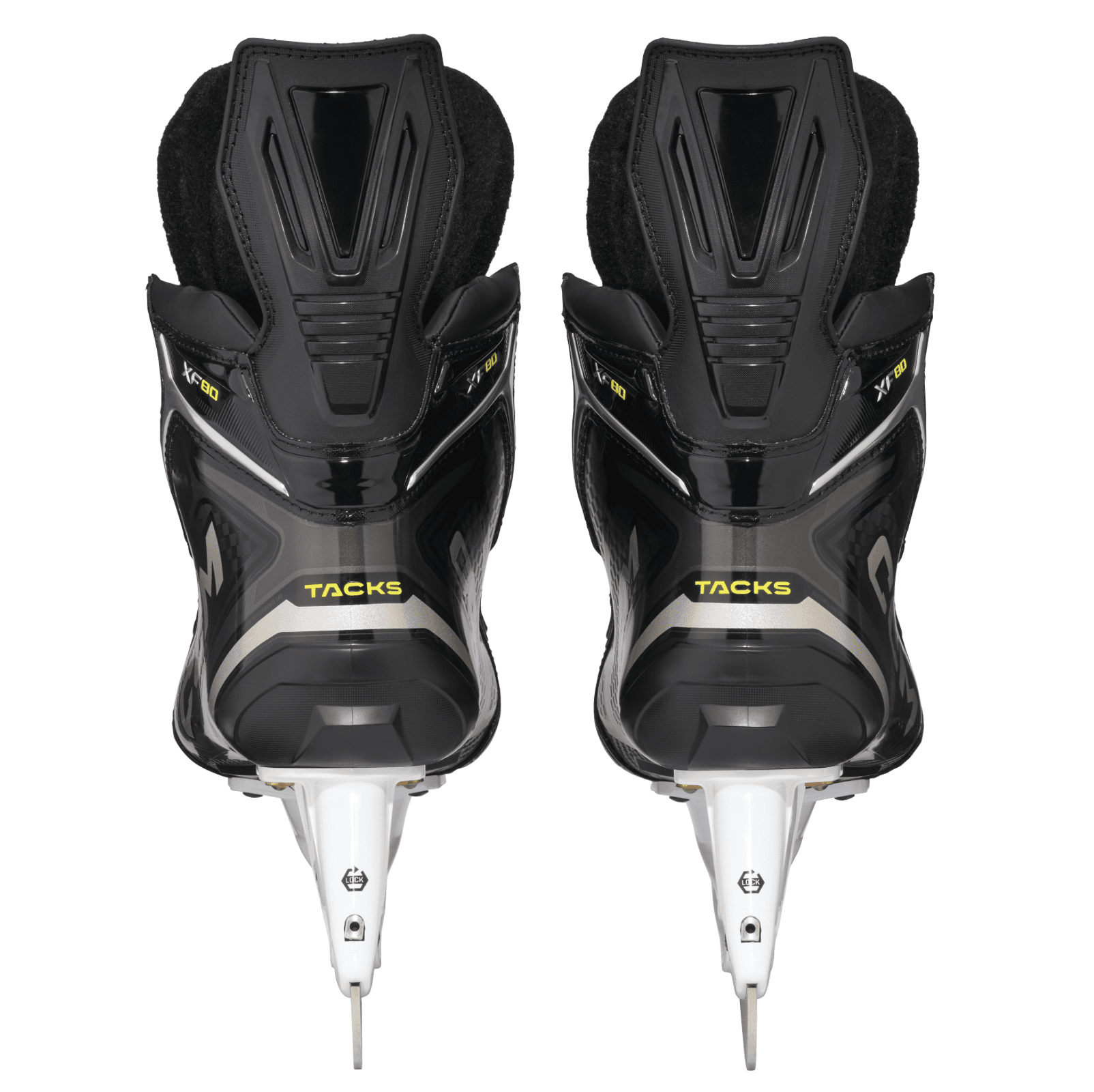 Experience superior performance with the CCM Tacks XF80 Ice Hockey Skates. The one-piece boot provides maximum energy transfer and a snug fit for strong and quick strides. The thermo-formable core and HD microfiber liner offer durability and deep comfort. The improved flex tendon and memory foam ankle padding enhance speed and support.