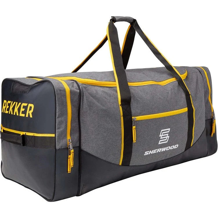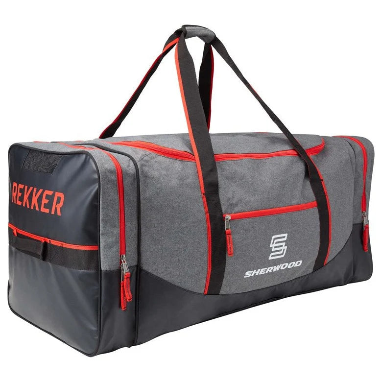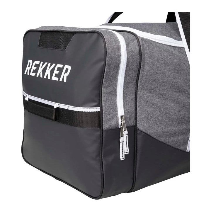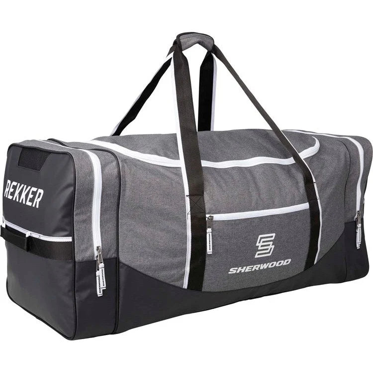 The Sherwood Rekker Carry Bag is expertly designed for hockey players seeking organised gear storage and easy transport. It features two zippered compartments with PVC mesh ventilation, ideal for skates and accessories to stay fresh. A front zip pocket keeps smaller items secure and accessible. The bag includes sturdy webbing handles with padded Uni-Grip for comfortable carrying and reinforced grab handles at each end for added durability. An ID window provides quick identification, making this bag a practical, well-constructed choice for serious athletes.