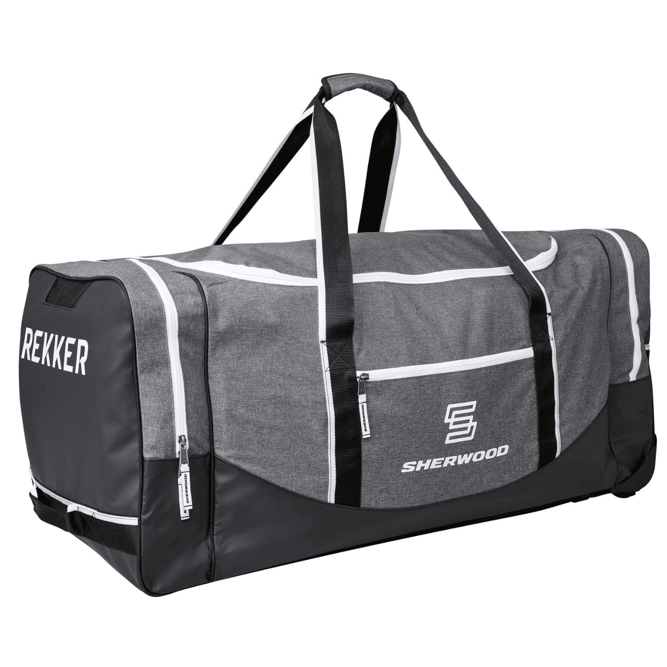 The Sherwood REKKER Team Wheel Bag is a great choice for the player looking for a durable yet practical hockey bag. Featuring two zippered side pockets for skates or accessories and a small front zip pocket, this bag can hold all of your hockey gear and more. Built to last the bag has reinforced grab handles on each end and has a tarpaulin protected bottom.