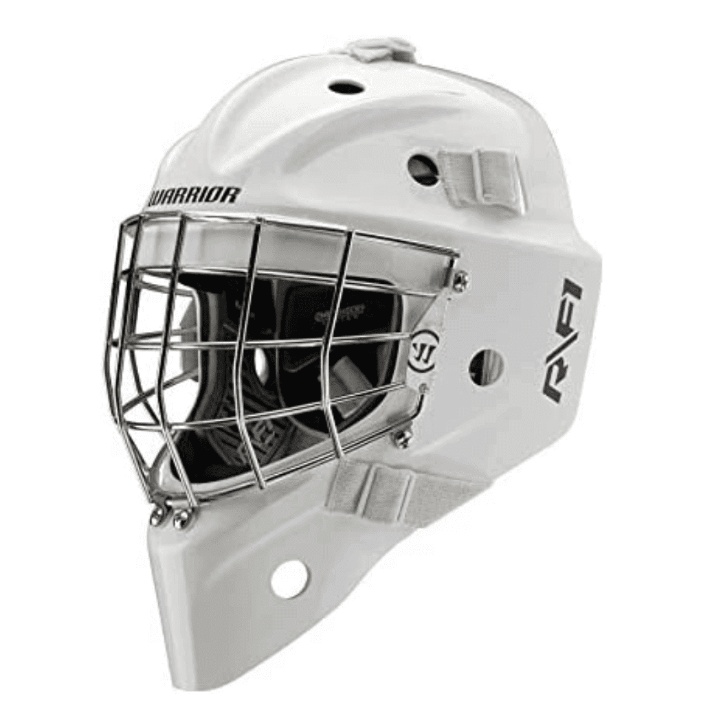 The Warrior Ritual F1 Sr+ Certified Goalie Mask is the perfect choice for Senior Tendys. It includes FantomFIT technology for optimal fit characteristics and IMPAX foam for superior protection. With OMNIshock+, the mask provides comfortable and reliable protection. The Minimus Carbon G1000 ensures extra shell strength and durability. The Polygiene sweatband helps reduce odor and sweat dripping down the face, along with an adjustable chin cup and a traditional backplate strap system to get the right fit. The package also includes a padded mask bag, clear dangler and lace, and a HECC stainless square cage.